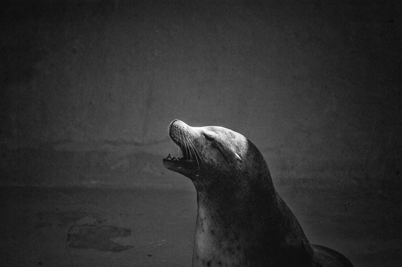 Les lieux de prises de vue ne sont volontairement pas nommés car il ne s’agit pas ici de dénoncer, mais d’abord de questionner, au travers d’un regard, d’une attitude, d’une situation, notre rapport à cette nature que nous aimons autant que nous la tourmentons. J’ai voulu restituer cette ambivalence qui est restée présente tout au long de ma visite de ces lieux, entre fascination et gêne. Une gêne qui est peut-être un reste d’enfance, de ce désir d’ouvrir la cage aux oiseaux… mais pas seulement. Sûrement aussi un souvenir, ancré au plus profond de nous, de cette ancienne liberté dangereusement exaltante que l’homme a aussi connu… en d’autres temps plus anciens, avant de s’enfermer dans ses prisons de béton et de finir par regarder, confortablement installé, la nature au travers d’un écran ou des barreaux d’une cage.